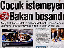 Maliye Bakanı Mehmet Şimşek, Haber Türk Gazetesi'nin "Çocuk istemeyen Bakan eşinden boşandı" başlığı ile manşetten verdiği haberi kurgu, hayal ürünü ve gerçek dışı olarak niteledi.