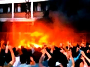 Yaklaşık 2 saat sonra otel ateşe verildi, saldırgan kalabalık sloganlarına devam etti.