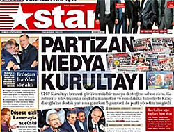 "PARTİZAN MEDYA KURULTAYI" manşetini atan Star gazetesi, "Kılıçdaroğlu salona girdiği sırada alkış tutan medya manşetlerden de selam durdu. TV’ler yürümesini bile ‘Son Dakika’ olarak geçerken, gazeteler adeta başbakanı seçti" diye yazdı...
