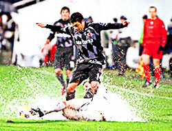 Suyun birikmesi topun iki takıma da sürprizler sunmanın kapısını açtı. Topun yeşil çimde kat edişi havadan olunca oyunda ikili didişmeler haline geliverdi. İlk 45 dakika boyunca kaleciler Rüştü ve İvankov ciddi manada topla irtibat kuramadılar. Yeşil-Beyazlıların orta alan oyuncuları Hüseyin ve Bekir'in direnci daha iyiydi. Sercan ve Volkan'ın da ileride baskı kurması konuk ekibe golü getirdi. 20'de Volkan'ın ortasını arka direkte iyi tamamlayan Ozan skoru 1-0 yaptı. Beşiktaş'ta Nihat'ın etkisizliği Tello'nun orta alana yardım etmeyişi Yeşil-Beyazlıların işini kolaylaştırdı. Hele Sercan'ın 36'da 50 metre sürerek atamadığı gol Kartal'ın saha içi oyun disiplininden ne kadar uzaklaştığının kanıtıydı. Rüştü ile Mustafa Denizli'nin oyundan çıkma tartışması da kontrolsüzlüğün tuzu biberiydi. İkinci yarıya etkisiz Nihat'ı kenara alıp Nobre ile başlayan Mustafa Denizli'nin bu hamlesine karşın Ertuğrul Sağlam'ın tercihi Bursa'nın ısıran ismi Volkan Şen'i çıkarmaktı. 47'de Sercan öyle bir gol kaçırdı ki maçın gidişatını da değiştirdi. Üç kişiyi geçen genç golcü topu filelere göndermek yerine auta attı.