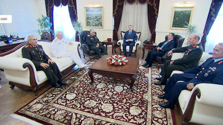 Yaklaşık bir saat süren görüşmenin ardından komutanların adresi Başbakanlık oldu. Erdoğan’a nezaket ziyaretinde bulunan komutanların yaklaşık 45 dakikalık ziyaretinde ana gündem maddesi ise terörle mücadele oldu.