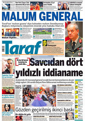 Ergenekon süreci ve darbe haberleri nedeniyle askerin en sevmediği gazetelerin belki de en başında Taraf geliyor. Bu öfkeyi önceki gün İlker Başbuğ dile getirmişti.. "İrtica İle Eylem Planı" ile ilgili soruya verdiği cevapta Taraf'ın adını ağzına almamış ve malum gazeteye planın polis tarafından servis edildiğini iddia etmişti.