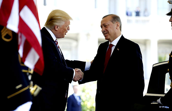 Cumhurbaşkanı Tayyip Erdoğan ile ABD Başkanı Donald Trump, ilk yüz yüze görüşmelerini gerçekleştirdi. İki liderin ortak basın toplantısında işbirliği vurgusu dikkat çekerken, Erdoğan’dan YPG çıkışı geldi.