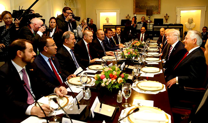 İki liderin bu görüşme ve basın toplantısının ardından heyetlerle birlikte bir çalışma yemeğine geçildi. Beyaz Saray'da gerçekleşen öğle yemeğine, Genelkurmay Başkanı Orgeneral Hulusi Akar, Adalet Bakanı Bekir Bozdağ, Dışişleri Bakanı Mevlüt Çavuşoğlu, Ekonomi Bakanı Nihat Zeybekci, Enerji ve Tabii Kaynaklar Bakanı Berat Albayrak, Milli Savunma Bakanı Fikri Işık, Cumhurbaşkanlığı Genel Sekreter Yardımcısı İbrahim Kalın ve MİT Müsteşarı Hakan Fidan da katıldı.