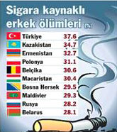 Vatan gazetesinin haberine göre; raporda dünya ülkeleri arasında erkek ölümlerinde sigaranın en etkili olduğu ülke Türkiye oldu.