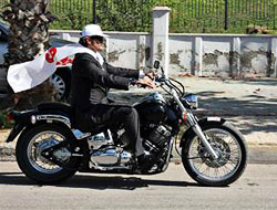 Tüzmen, daha sonra, üzerinde "evet" yazan şapka ve pelerin takarak motosikletle şehir turu attı. Tüzmen'i bazı vatandaşlar ilgiyle izlerken bazıları da alkışlarla destek verdi.