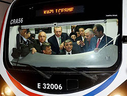 Marmaray'ın ilk yolcularını Yenikapı istasyonunda hostesler çiçeklerle karşıladı.
