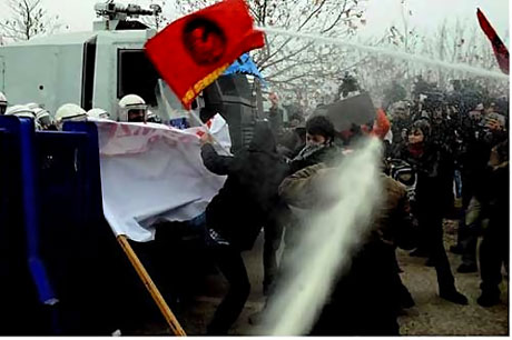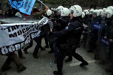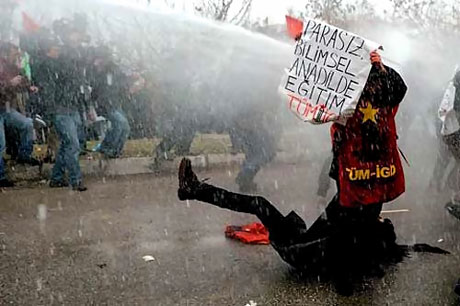 YÖK Başkanı Prof. Dr. Yusuf Ziya Özcan'ın Öğrenci Konseyi başkanları ile görüşmesini protesto eden YÖK binası önündeki öğrencilere polisin müdahalesi sert oldu. Polis ekiplerine cam şişe ve taş fırlatan öğrencilere, polis biber gazı ve tazyikli su ile karşılık verdi.