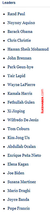 Time Dergisi'nin "dünyada yılın en etkili 100 kişisi" listesi günün en dikkat çeken haberleri arasında yer aldı. Listenin "dünyanın en etkili 25 lideri" kısmında Türkiye'den iki isim yer aldı. PKK lideri Abdullah Öcalan ve Gülen Cemaati lideri Fethullah Gülen'in girdiği liste ANF ve Zaman gazetelerinde ilginç bir çakışmaya sahne oldu.